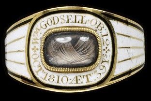 Are you thinking, “Eww, who would keep hair?” Remember what we said about no pictures. Did you save a curl of your kids’ hair from their first hair cut? Do you know someone who saved a lock of their spouse’s hair when they died? I’ll bet a few of you even saved your kid’s first baby tooth. Hair is lasting, and it’s a tangible reminder of a loved one. The mourning ring with hair set in it that you disdain as creepy was someone’s treasured remembrance.